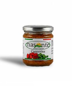 - Capperina, by Nasonte. A ready-made Sicilian sauce that includes sun-dried Sicilian tomato, capers, toasted almonds, Evo oil, basil and garlic. Excellent when paired with appetizers, bruschetta, first courses and side dishes.