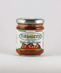 - “Alla norma” topping, by Nasonte, is a ready-made sauce of Sicilian tradition, mainly prepared with fresh tomatoes and eggplants, delicious to taste on most types of pasta.