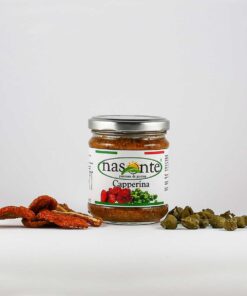 - Capperina sauce, by Nasonte. A ready-made Sicilian sauce that includes sun-dried Sicilian tomato, capers, toasted almonds, Evo oil, basil and garlic. Excellent when paired with appetizers, bruschetta, first courses and side dishes.