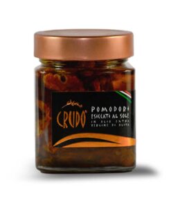 - 2 x 180 g sundried tomatoes, patè jars, soft and velvety creams processed with “Crudo” extra virgin olive oil.