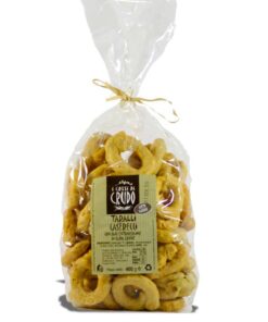 - 1 x 400g Classic Apulian Taralli, prepared with Crudo EVO oil, selected Altamura flours, salt and yellow Muscat wine, according to the authentic recipe of Bitetto