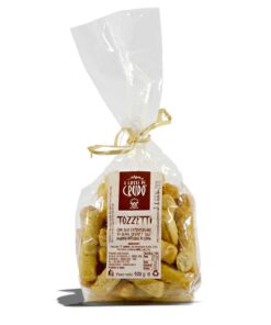 - 1 x 400g Tozzetti with Cervia salt, prepared with Crudo extra virgin olive oil, selected Altamura flours, yellow Muscat wine, are embellished with Cervia salt crystals.